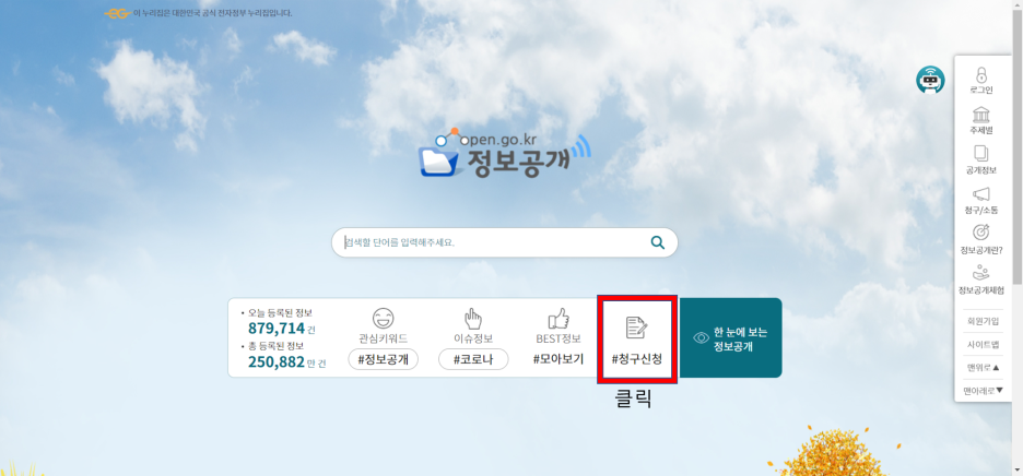 4. 회원가입이 완료된 후 청구신청을 클릭하게 되면 다음과 같이 화면이 뜹니다.