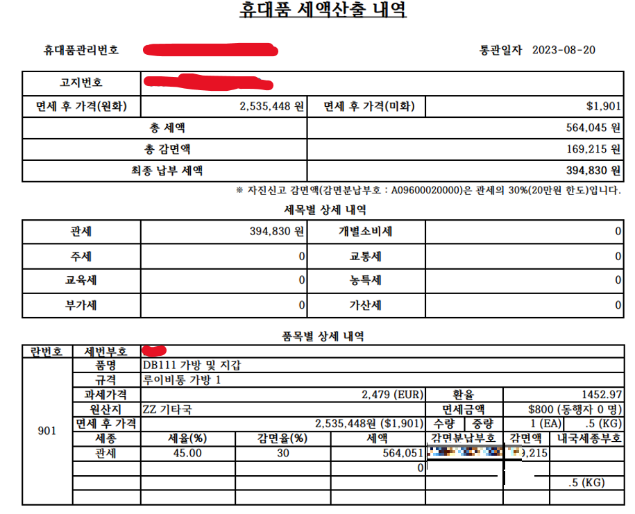 꼭 관세 납부하고, 관세납부증명서 발급 받아서 가방 교환에 성공하시길 바랍니다.