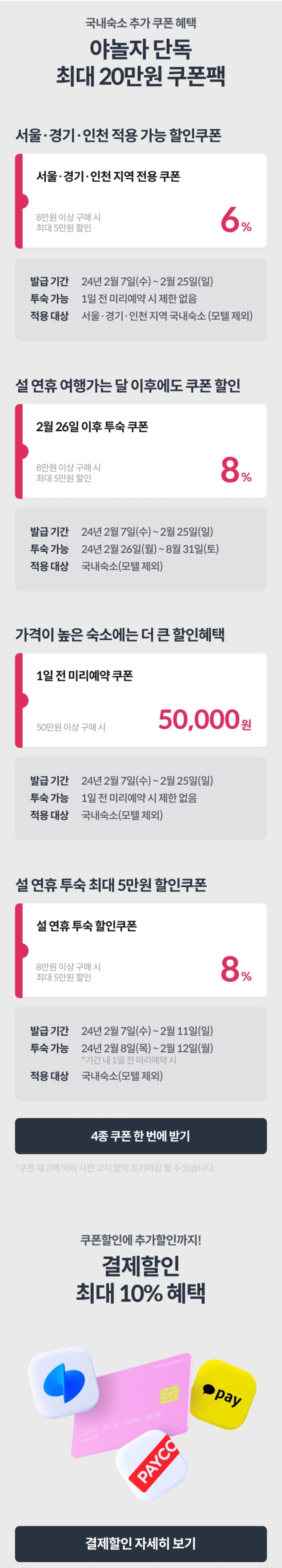 - 설연휴 투숙 최대 8%(8만원 이상)