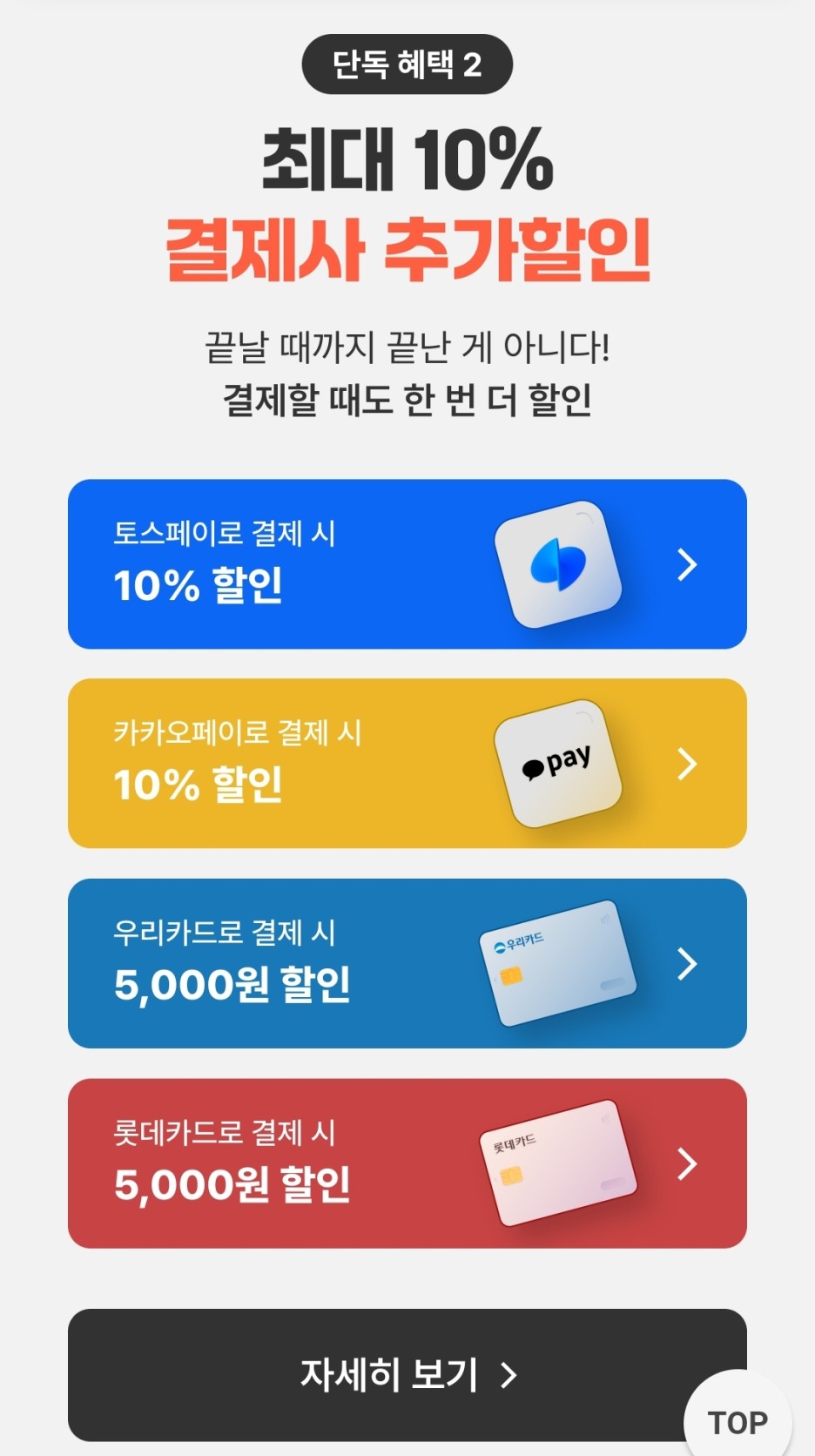 (토스페이, 카카오페이 10%, 우리카드, 롯데카드 5000원 할인)